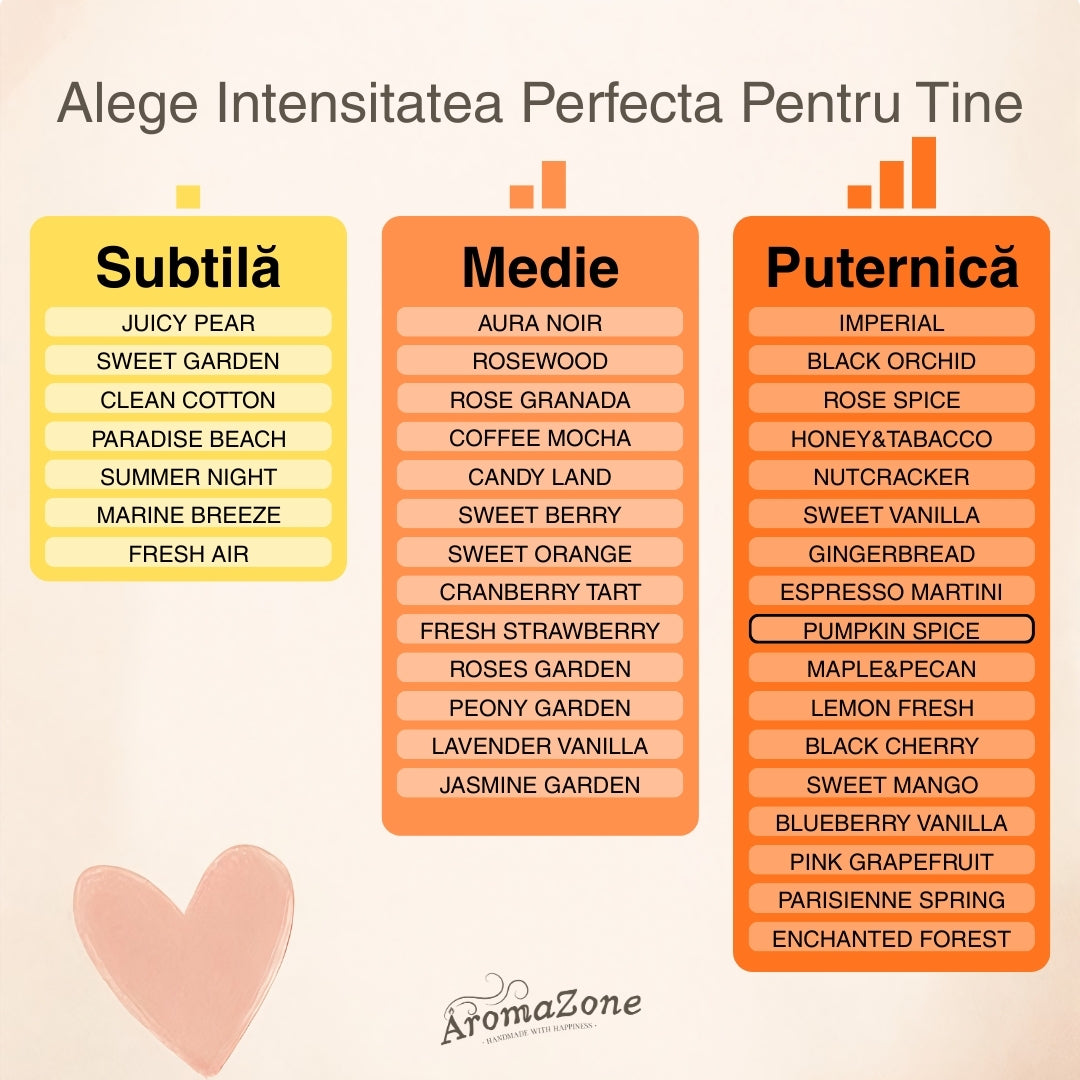 Folosim concentrația maximă de ulei parfumat permisă, astfel încât parfumul să fie clar, persistent și să se simtă cu adevărat în spațiu — nu doar la prima utilizare.