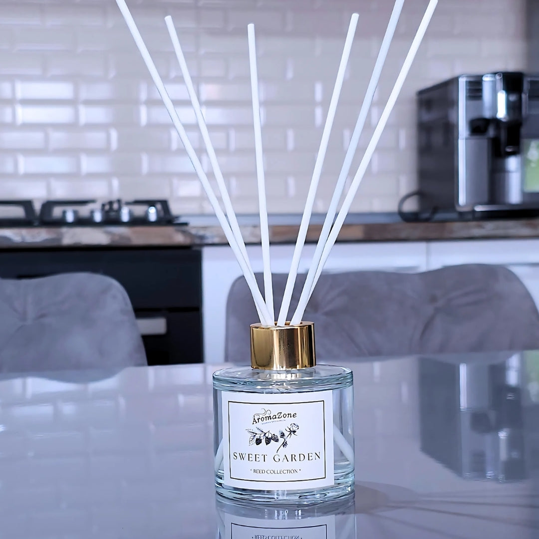 SWEET GARDEN este un odorizant de cameră handmade din colecția REED COLLECTION, inspirat de frumusețea unei grădini îmbelșugate, unde aromele fructate se împletesc cu note florale și accente lemnoase. Deschiderea este proaspătă și energizantă, cu fructe de pădure suculente, coacăze negre, frunze verzi și tonuri aldehidice, aducând un aer curat și vibrant. Inima parfumului dezvăluie un buchet cald și condimentat de cuișoare, mușcate, trandafir și iasomie, ce conferă eleganță și profunzime. În bază, mosc catifelat, mușchi verde, acorduri dulci și note lemnoase creează o senzație confortabilă și îmbietoare. Formula ECO-FRIENDLY, fără alcool și aprobată în SUA, garantează o difuzare uniformă până la 12 săptămâni, menținând aroma la fel de intensă de la prima până la ultima zi.