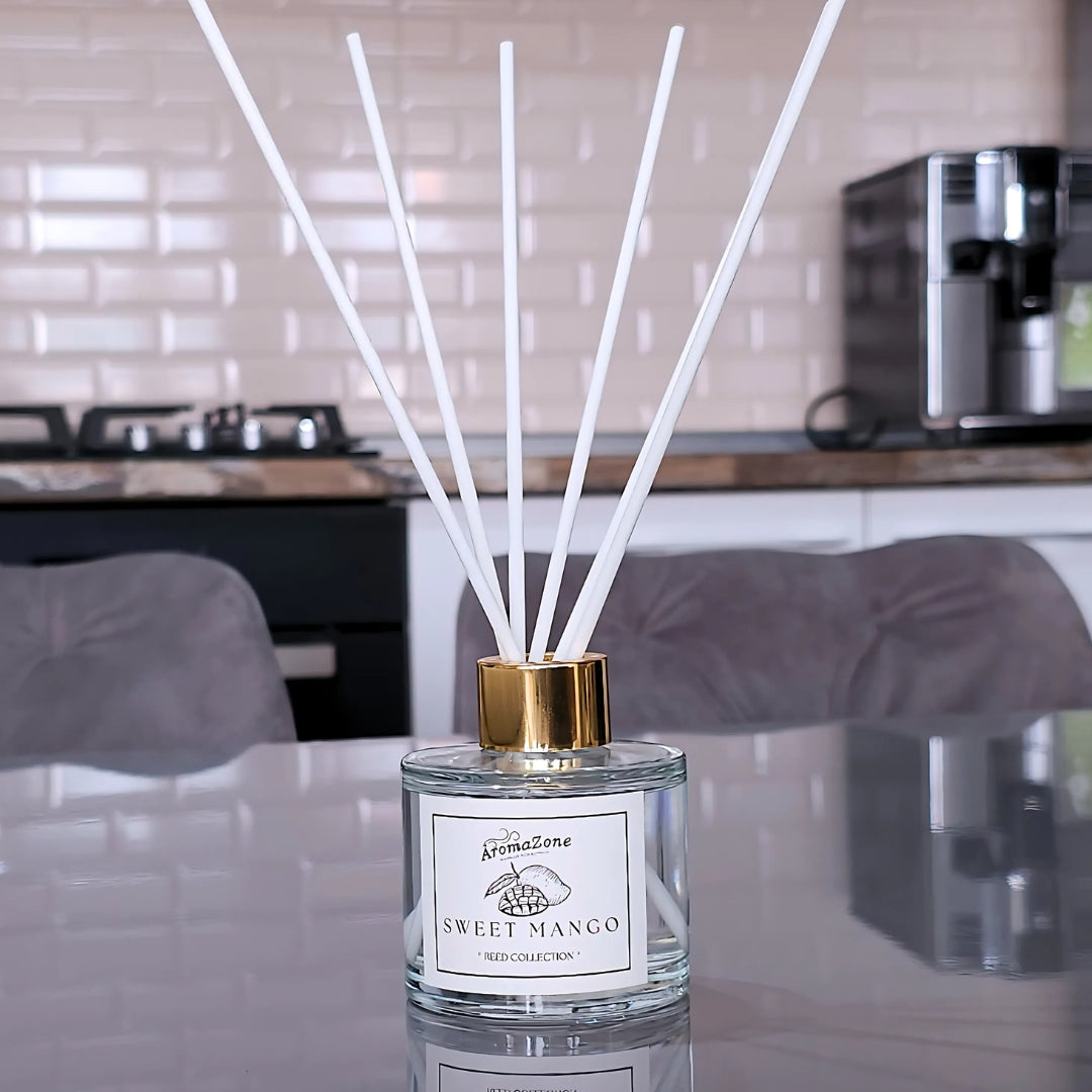 SWEET MANGO este un odorizant de cameră handmade din colecția REED COLLECTION, creat pentru a aduce în casa ta energia tropicală și prospețimea fructelor exotice. Baza de parfum ECO-FRIENDLY, fără alcool, aprobată în SUA, oferă o difuzare lentă și constantă a parfumului timp de până la 12 săptămâni, umplând încăperea cu o aromă vibrantă și revigorantă.