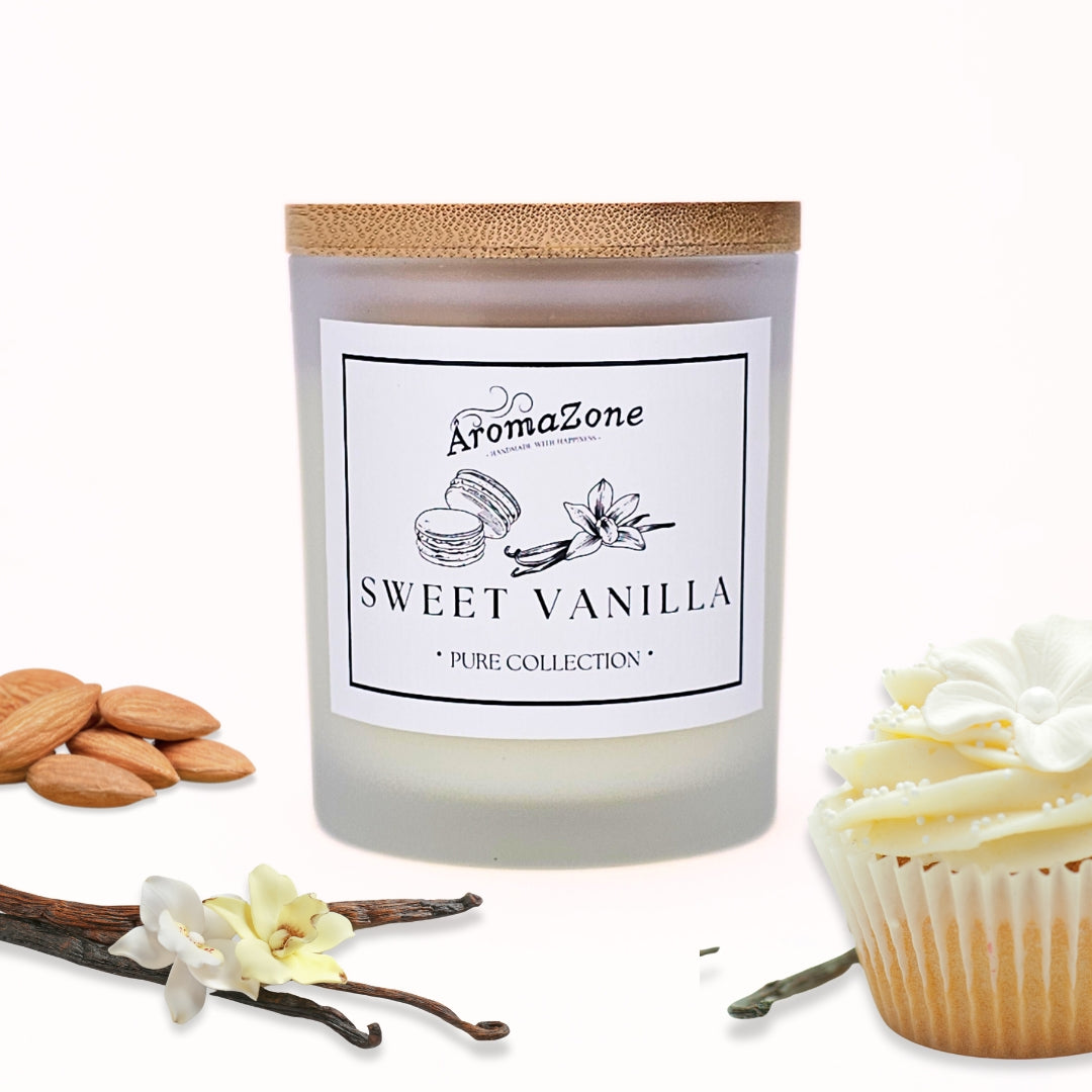 SWEET VANILLA este o lumânare parfumată handmade, turnată manual în recipiente mate din sticlă, cu capac de bambus – o lumânare decorativă minimalistă cu arome delicate de vanilie.